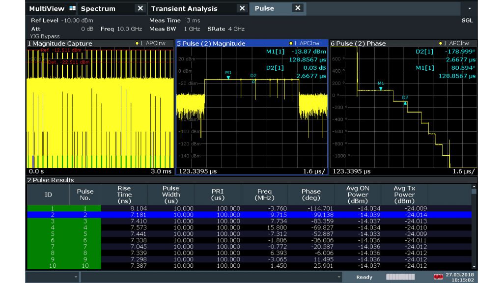 FSW具备高达8.3GHz的分析带宽,并提供用于雷达测试的重要分析功能。